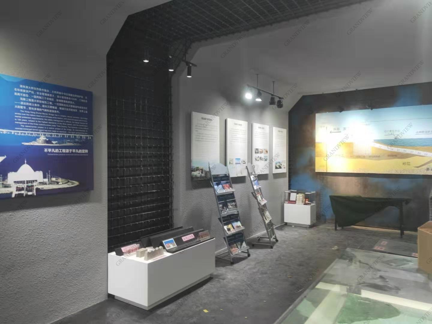 在展廳的布置上,廣角別出心裁,牛頭島預(yù)制廠沙盤模型、鋼筋籠模型、建設(shè)工具等應(yīng)有盡有,廣角在有限時(shí)間里爭分奪秒,最終成品效果與設(shè)計(jì)效果圖高度一致,良好地展示了港珠澳大橋的風(fēng)貌和自身的策劃實(shí)力,使雙方達(dá)到了共贏。