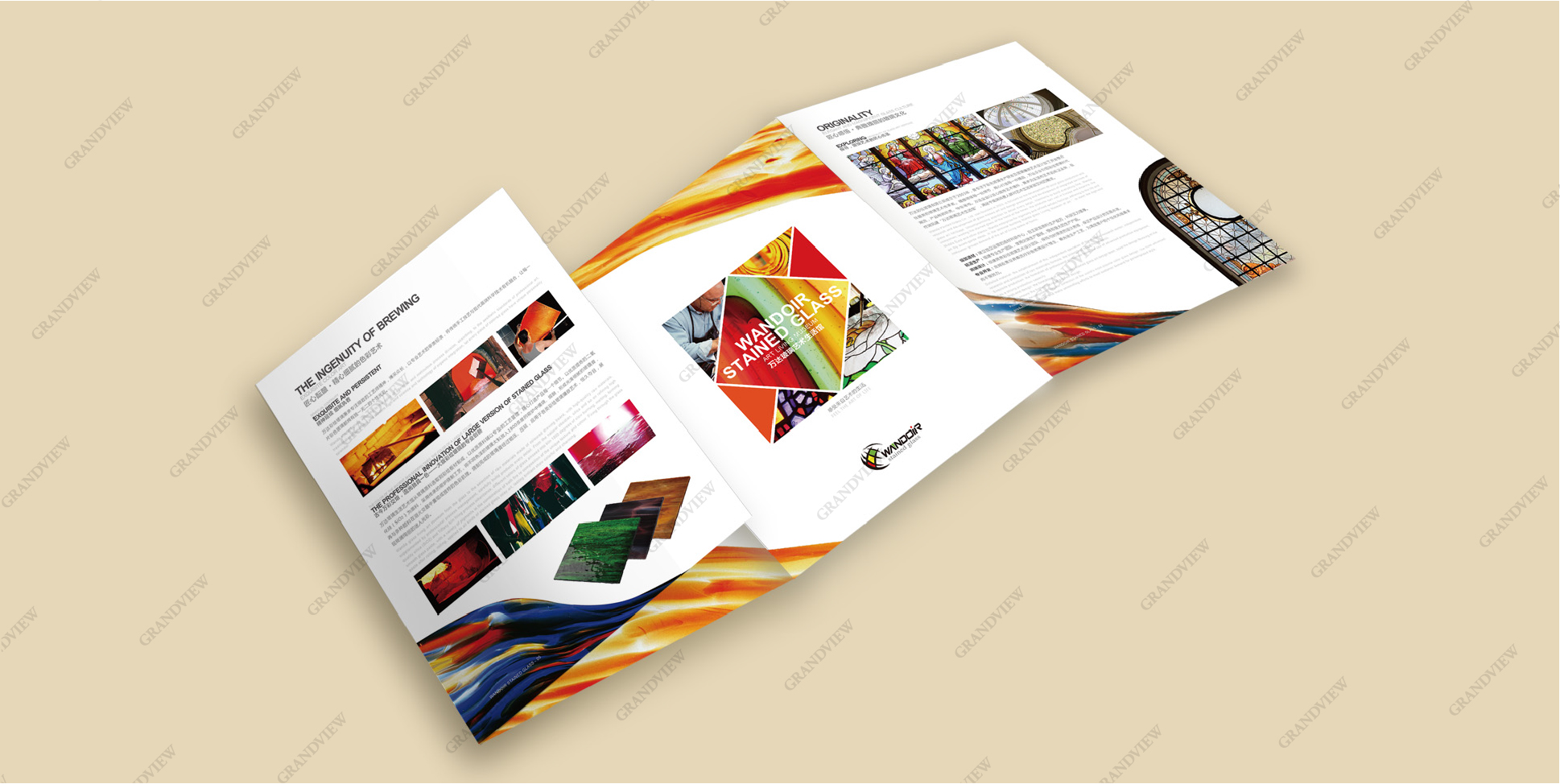 廣角為萬達(dá)萬達(dá)彩繪玻璃設(shè)計(jì)的折頁流光溢彩、絢麗燦爛,將“最具視覺吸引力結(jié)構(gòu)藝術(shù)”的孤傲彩繪玻璃展品融入現(xiàn)實(shí)生活,賦予生活個(gè)性,賦予產(chǎn)品活力。折頁采用大紅、明黃、深綠等厚重的色彩設(shè)計(jì),集藝術(shù)性和實(shí)用性于一體,充分展示了彩繪玻璃的獨(dú)特風(fēng)格,將彩色玻璃藝術(shù)設(shè)計(jì)文化與人類生活空間交織相融,使其更具魅力。