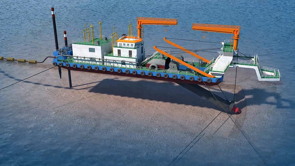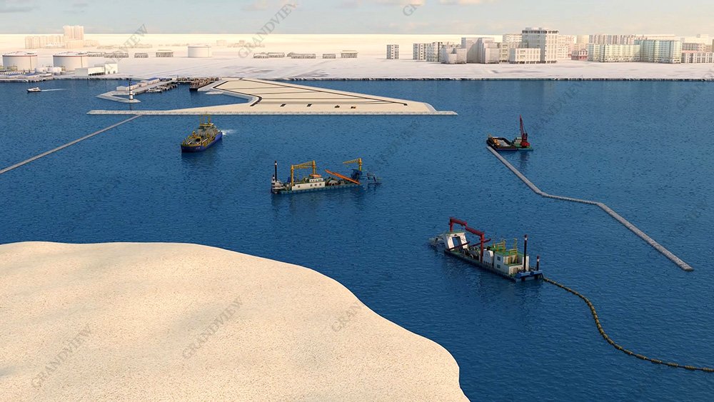 絞吸船清淤、臨時圍堰施工、疏浚吹填施工等作業(yè)過程,多方位角度、全景加特寫的鏡頭以成熟的動畫技術(shù)加以展現(xiàn)。